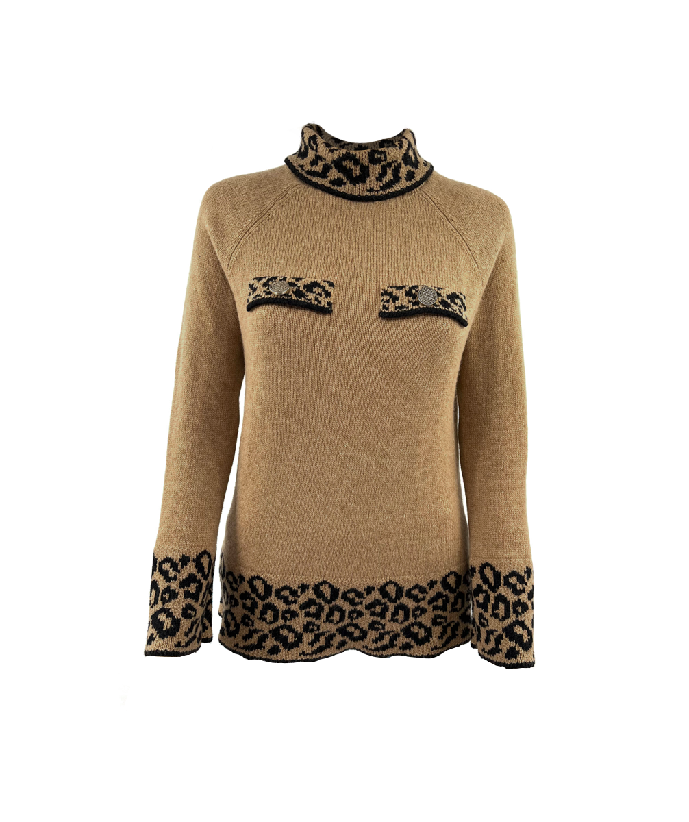 Kaschmirpullover mit Leoparden-Rippen-Muster