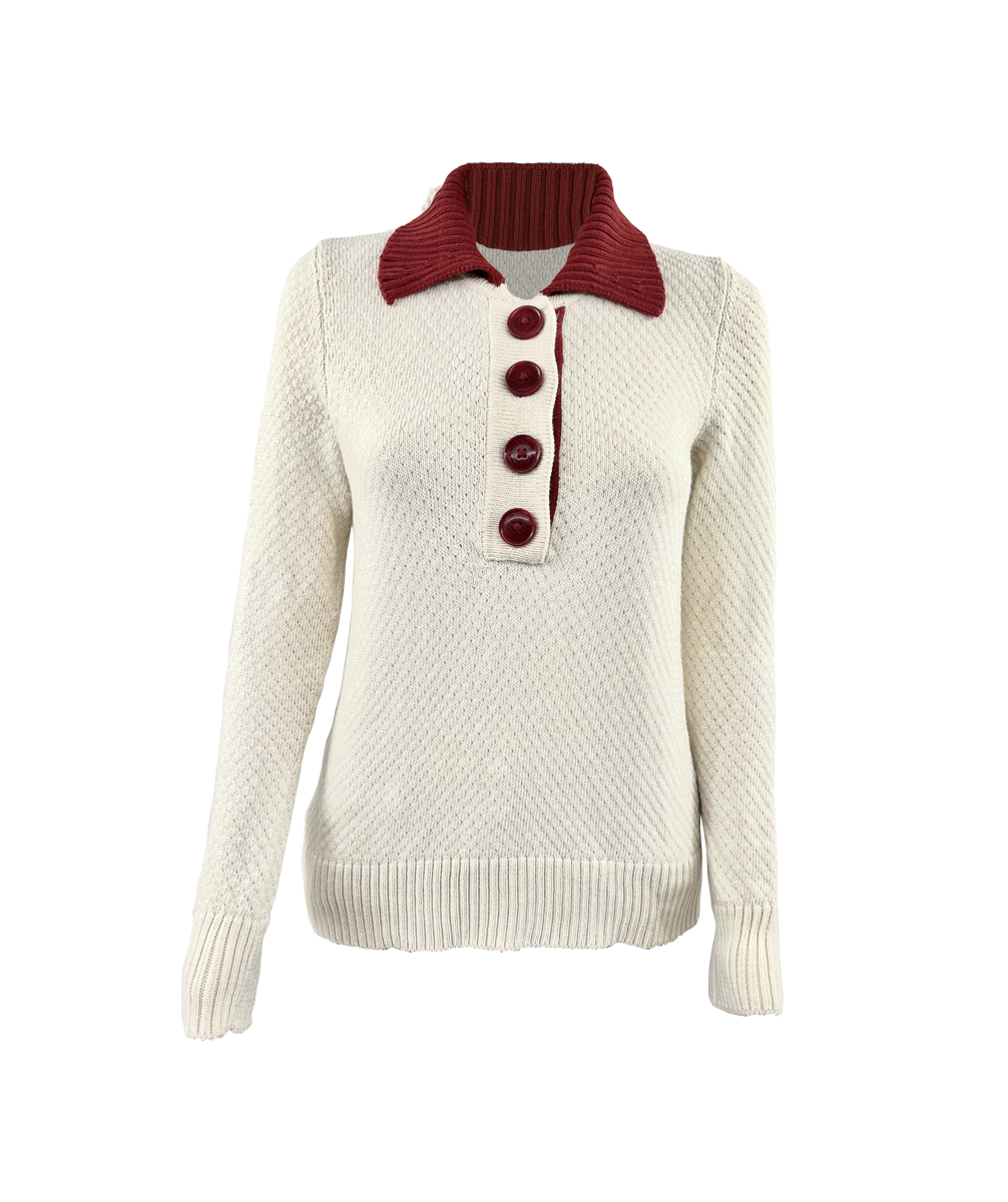 Creme Merino Wool Sweater Polo | Kontrastrote Knöpfe