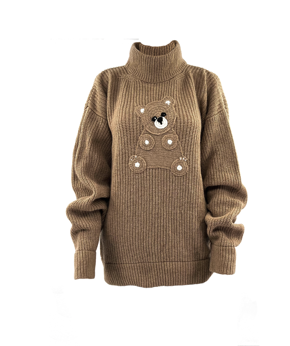 Kaschmir-Wolle Oversize-Pullover mit gehäkeltem Teddy