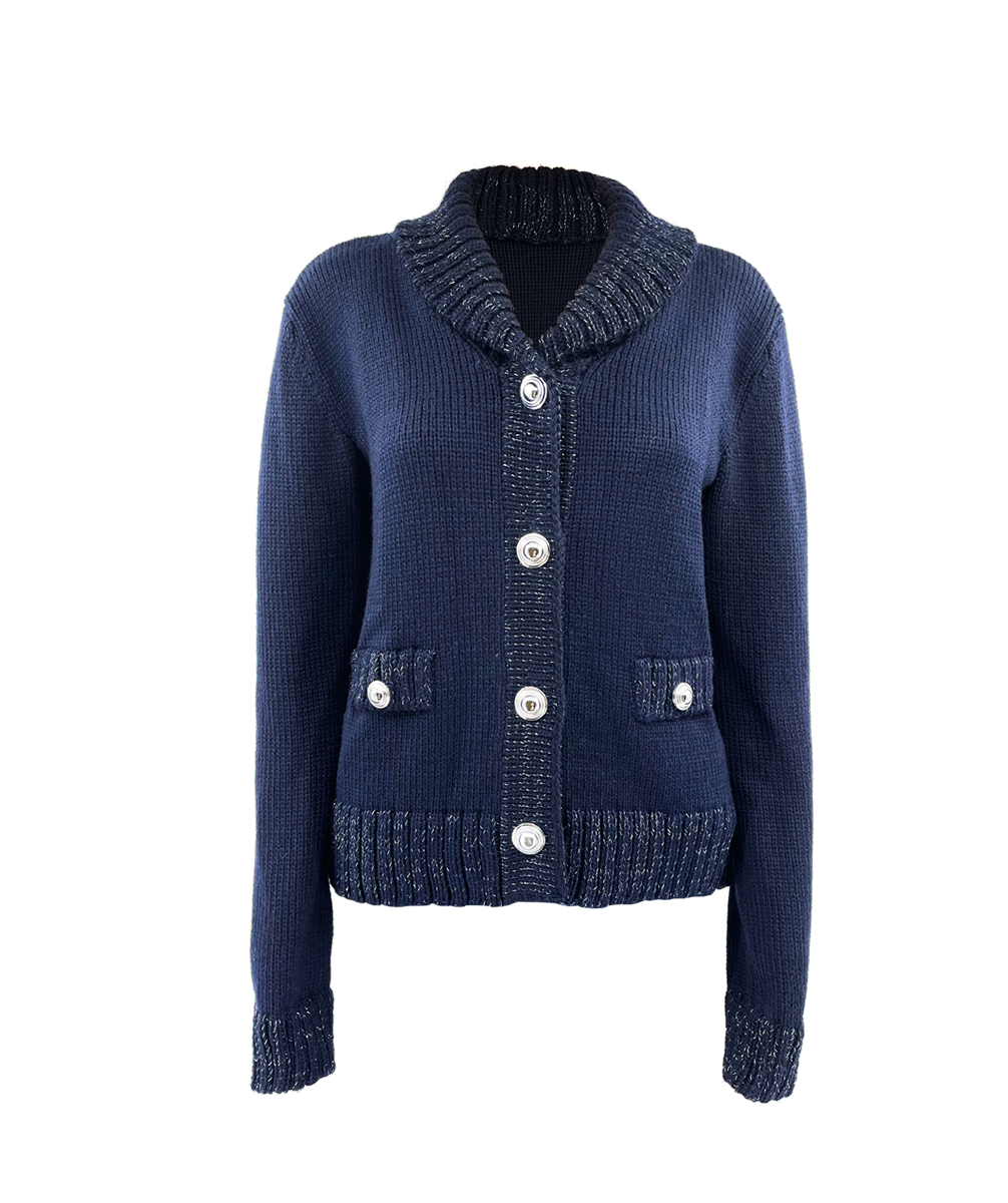 Merino-Moonlight Cardigan – Weiche Wärme trifft kosmischen Glanz